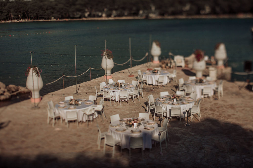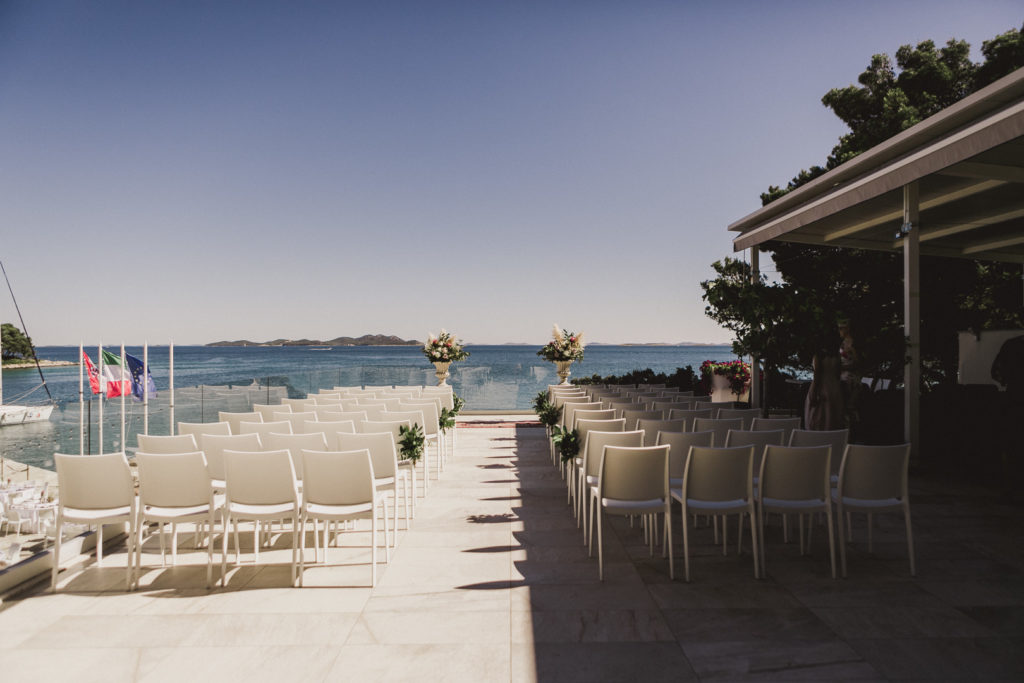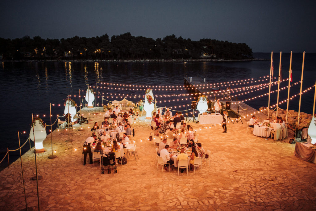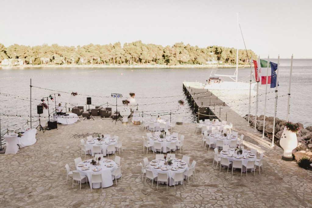 Crvena Luka Hotel & Resort is a unique blend of rich natural surroundings and modern design set in an exclusive location, surrounded by century-old pine forests and a one-of-a-kind sandy beach. The ceremony can be done at the dock or at the top terrace with the magnificent panoramic views. The dinner is set up at the terrace restaurant with a beautiful seaview of the Kornati archipelago. The Crvena Luka Hotel & Resort has a large selection of all inclusive wedding packages in Croatia. The venue is also located on resort properties, making it a perfect location for larger groups and guests with kids.