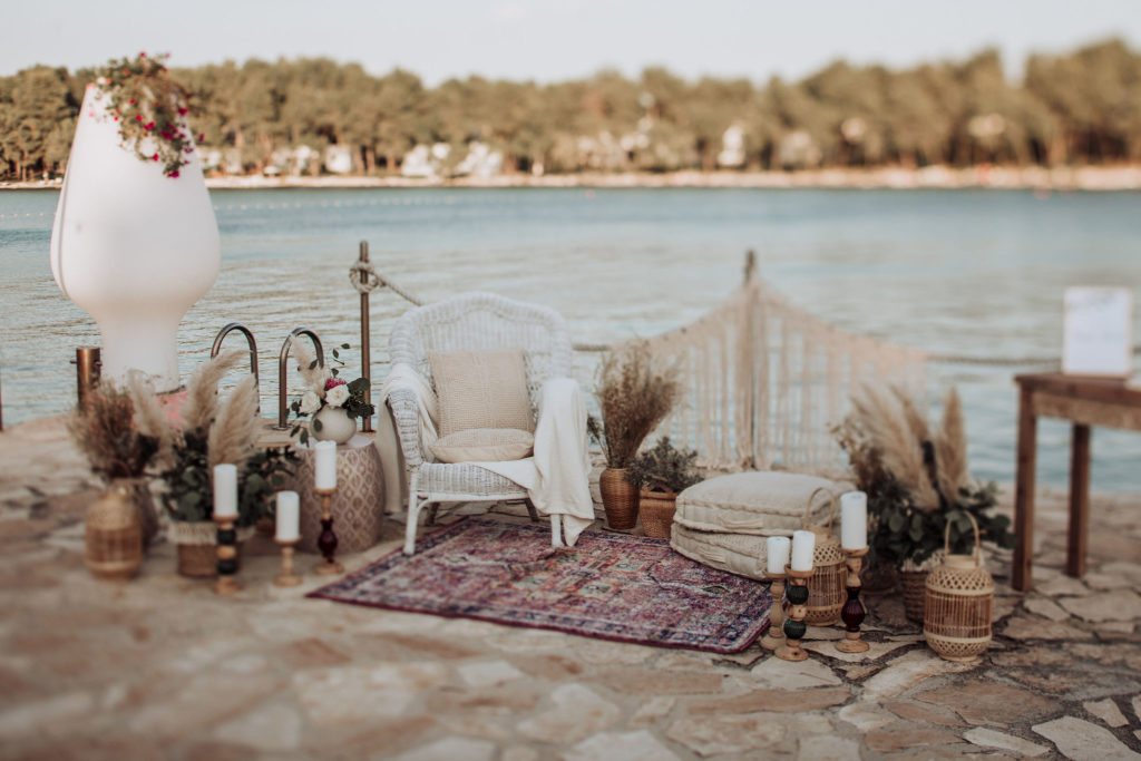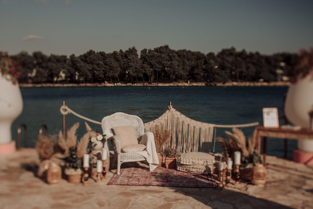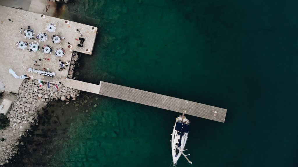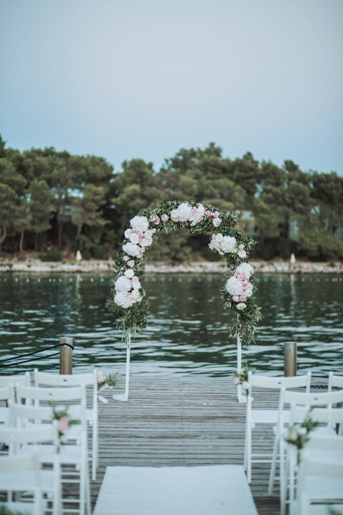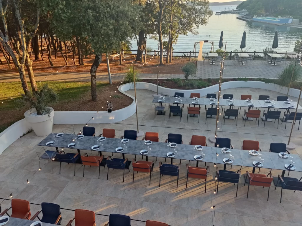 Crvena Luka Hotel & Resort is a unique blend of rich natural surroundings and modern design set in an exclusive location, surrounded by century-old pine forests and a one-of-a-kind sandy beach. The ceremony can be done at the dock or at the top terrace with the magnificent panoramic views. The dinner is set up at the terrace restaurant with a beautiful seaview of the Kornati archipelago. The Crvena Luka Hotel & Resort has a large selection of all inclusive wedding packages in Croatia. The venue is also located on resort properties, making it a perfect location for larger groups and guests with kids.